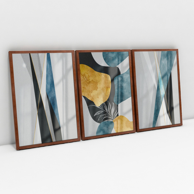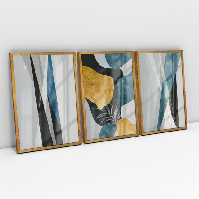 Quadro Abstrato Geométrico Ways Kit com 3 Quadros